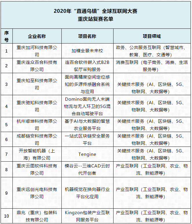 2020“直通乌镇”全球互联网大赛网络初赛长江经济带(重庆)赛区于2020年6月-8月完成报名,经专家评审,最终从众多项目中选出前十强入围重庆站复赛。